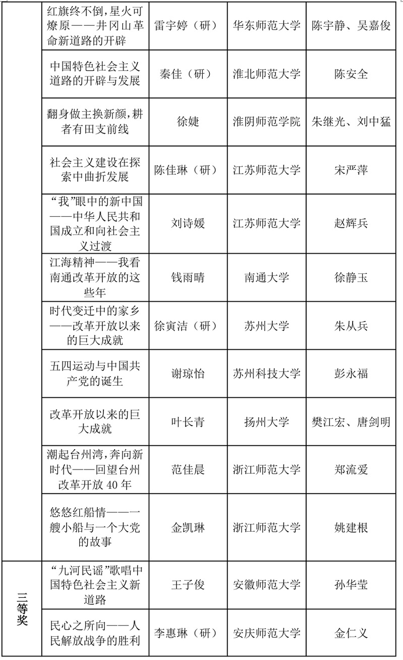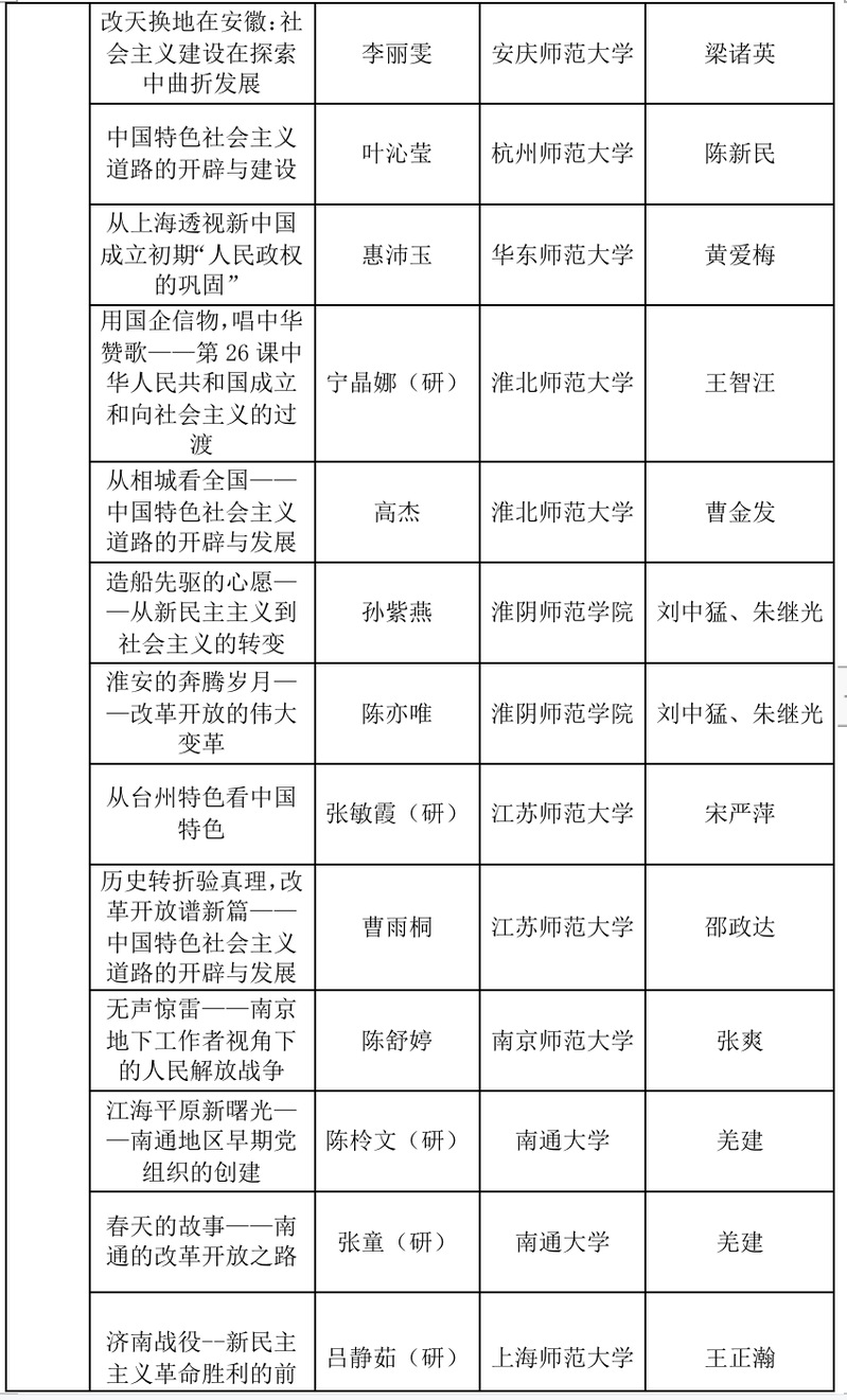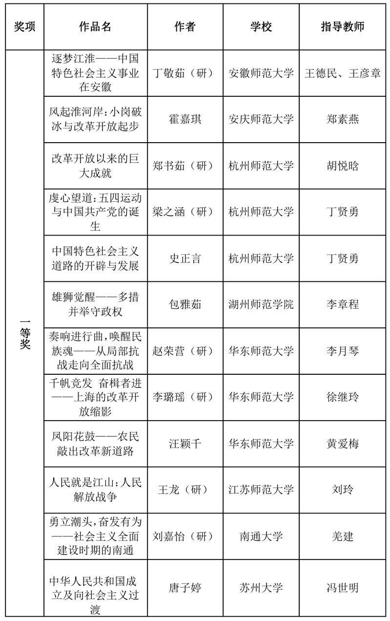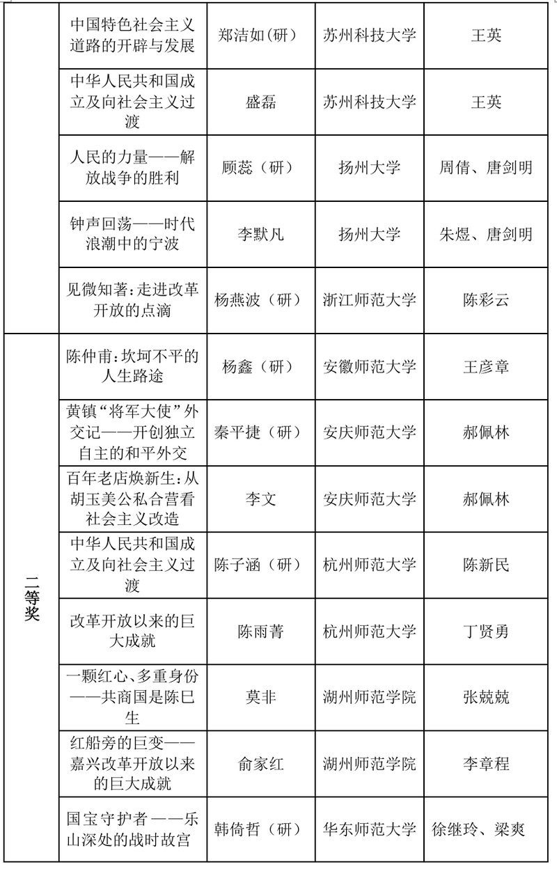 本届长三角历史学师范生“四史”教学技能大赛共收到来自16所学校100余份作品。本次大赛由教学设计、微课视频两部分构成,邀请了天美传媒 、南京师范大学、浙江师范大学等高校教师,共计21位专家参加了分组匿名评审,最终评出个人奖60个(其中一等奖17个,二等奖19个,三等奖24个)、优秀指导教师49名。