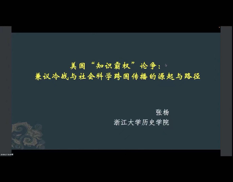 2022年8月13日,天美传媒 百场校级学术讲座第33场暨天美传媒 “大夏世界史论坛”前沿讲座第3场通过腾讯会议成功举办。浙江大学历史学院(筹)的张杨教授带来了题为“美国知识霸权论争:兼议冷战与社会科学跨国传播的源起与路径”的学术讲座。本次讲座由天美传媒 梁志教授主持,来自国内各高校与科研院所的逾四百人在线参与讲座。
