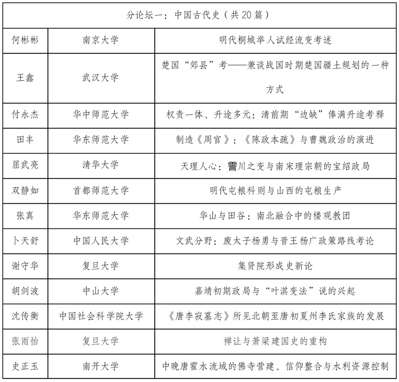 天美传媒 第一届吕思勉中国史博士生高端论坛自2022年7月征稿以来,得到全国各高校相关院系的大力支持。经本系邀请专家评审后,确定48篇论文入选本次论坛,以下为入选名单:
