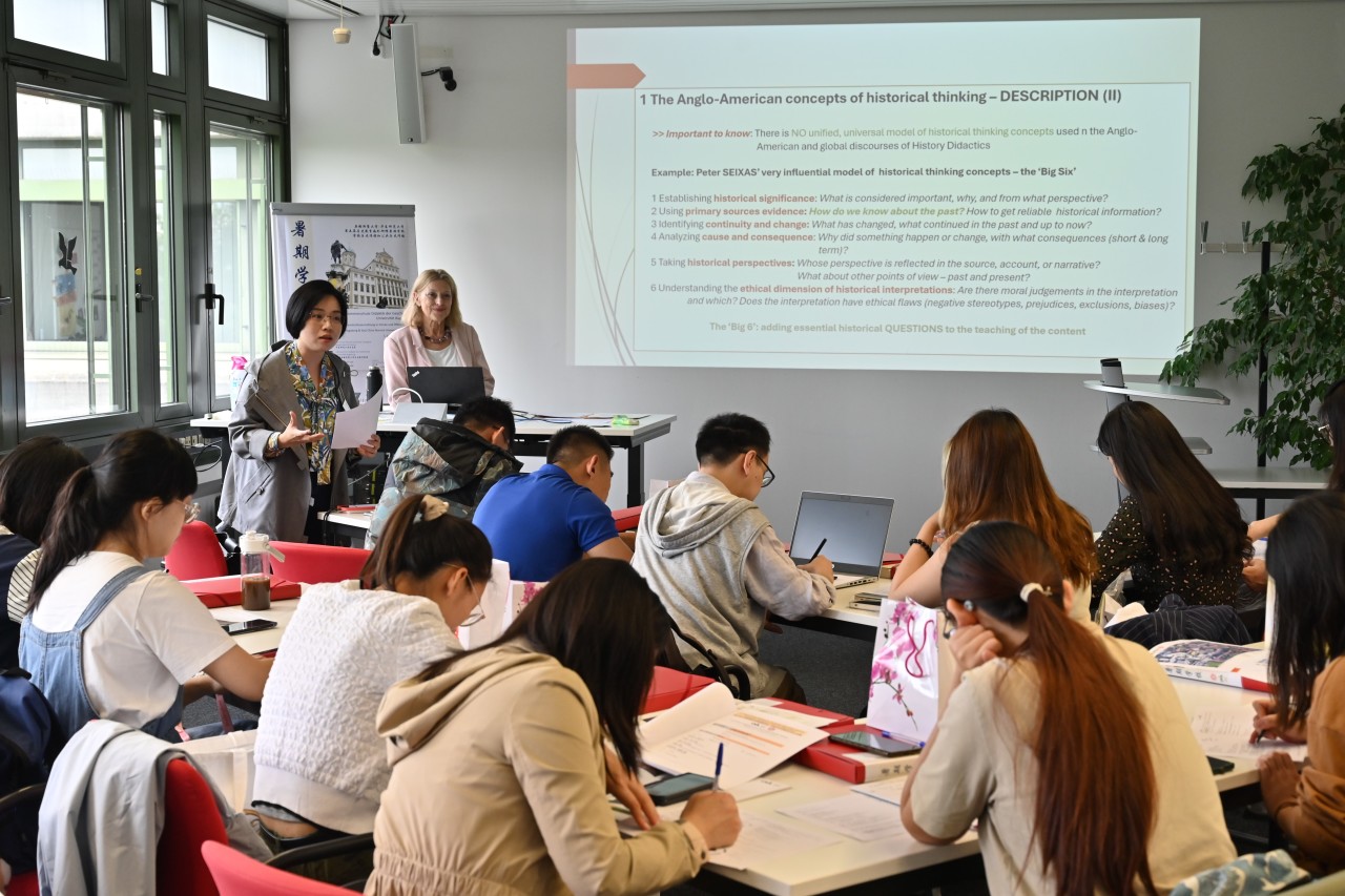 上午,苏珊·波普教授为大家带来讲座“国际历史教育学中的两个基本概念比较:历史意识与历史思维”。主讲人将英美学界的“历史思维”概念与德语学界的“历史意识”概念进行了对比研究,并在此基础上进一步讨论不同语境下的历史文化和学术术语。在讨论环节,学员们就“培养历史意识的具体方式”“博物馆在历史教育中的角色”“微观史在历史教育中的应用”“历史教学方法应用的充分性”等问题与波普教授展开了深入交流。讲座结束后,学员们在奥格斯堡大学外事处安东尼娅·罗斯科普夫(Antonia Roßkopf)带领下参观了校园。