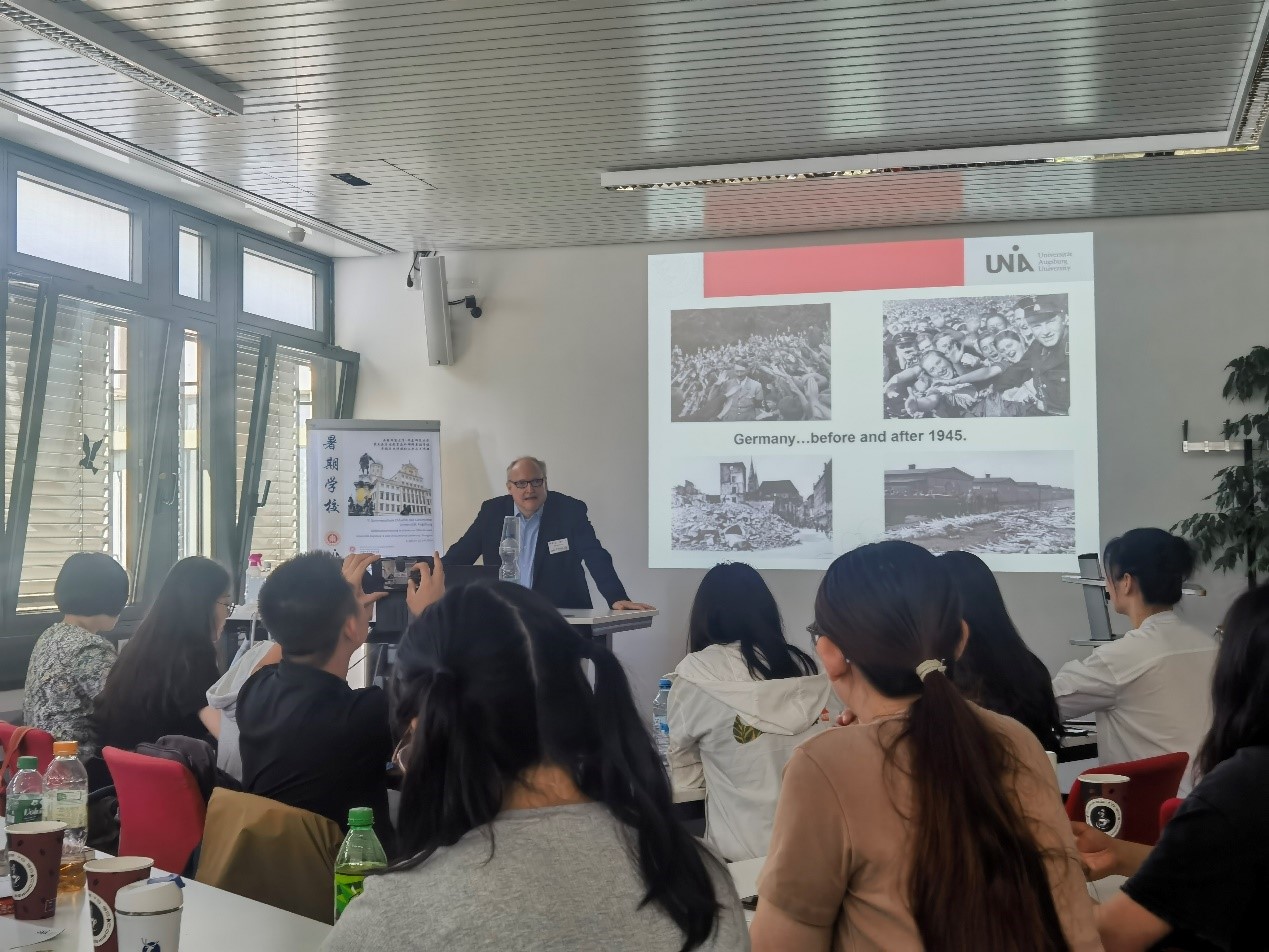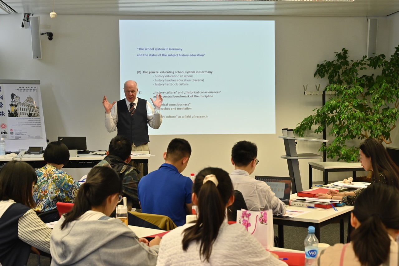 7月1日至7月13日,由天美传媒 和德国奥格斯堡大学人文历史学院联合主办的第五届历史教育海外研修暑期学校在德国举行,来自全国各地的高校教师、中学教师,以及天美传媒 学生20余人参加。本次活动由我校特聘教授、中国德国史研究会会长景德祥和副教授范丁梁担任中方领队,我校荣誉教授、奥格斯堡大学历史教育学荣休教授苏珊·波普(Susanne Popp)和奥格斯堡大学历史教育学教席学术顾问米夏埃尔·沃布林(Michael Wobring)担任德方领队,天美传媒 驻奥格斯堡大学海外工作站访问博士生杨琪担任助教。