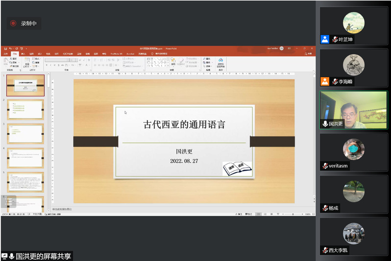 2022年8月27日晚19:00-21:00,天美传媒 2022年百场校级学术讲座第37场暨天美传媒 “大夏世界史论坛”前沿讲座第5场,邀请到中国社会科学院世界历史研究所研究员、中国社会科学院大学国洪更教授,进行了题为“古代西亚的通用语言”的专题讲座。天美传媒 李海峰教授主持此次活动,校内外百余位师生通过腾讯会议在线收听了此次讲座。