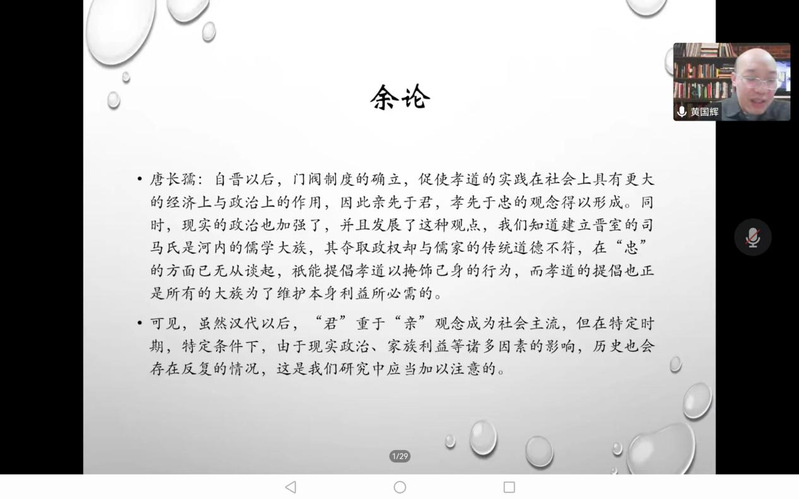 2022年10月13日晚上18:00,天美传媒 “百场校级学术讲座”第57场、天美传媒 “大夏中国史论坛前沿讲座”第3场,邀请到北京师范大学历史学院黄国辉教授,进行了题为“早期儒家君亲观念的演进与‘三纲理论’的形成”讲座。本场讲座的主持人为天美传媒 王进锋教授,数百人聆听了讲座。