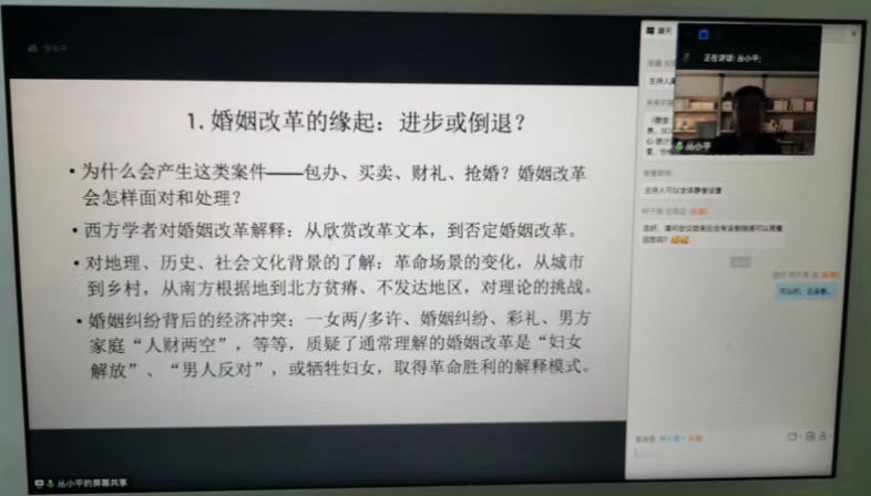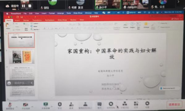 2022年10月24日13时30分,丛小平教授的讲座《家国同构:中国革命的实践与妇女解放》在腾讯会议(会议号:954425751)正式开讲。本次讲座由历史学系姜进教授主持。