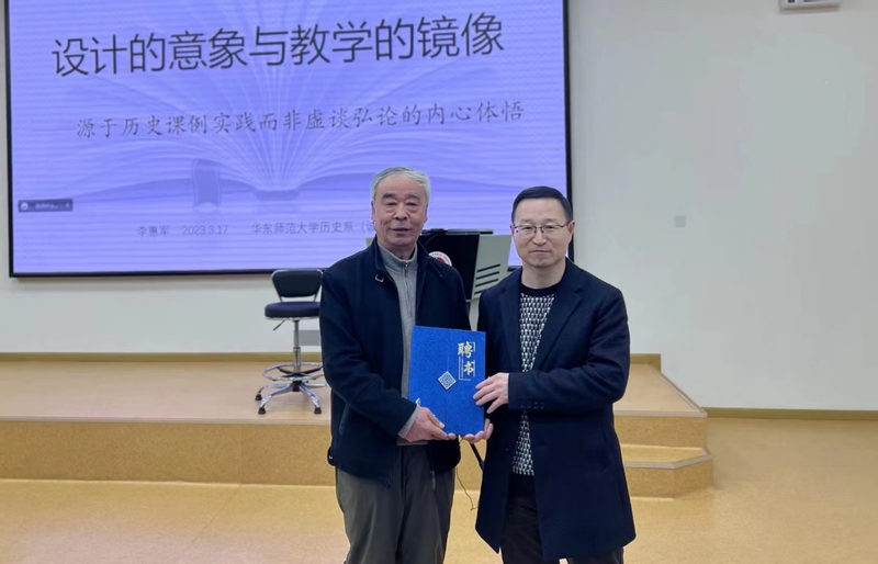 3月17日下午,天美传媒 邀请上海市特级教师李惠军老师在一教206做了题为《例谈教学设计的灵感——逻辑与达成》的讲座。天美传媒 系主任梁志老师出席本次讲座并为李惠军老师颁发了“大中小历史教育研究与实践基地发展咨询专家”聘书,副系主任黄爱梅老师、教师教育学院徐继玲老师、华师大二附中周庆彰老师以及天美传媒 本研各年级学生参加本次讲座。