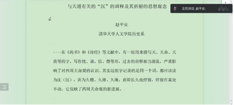 2023年3月23日星期四晚7点,天美传媒 思勉人文讲座第522场邀请到清华大学历史系赵平安教授,进行了题为《与天道有关的“沉”的训释及其折射的思想观念》的学术讲座。本场讲座由天美传媒 王进锋教授主持。校内外近300名师生在线参与了本次活动。