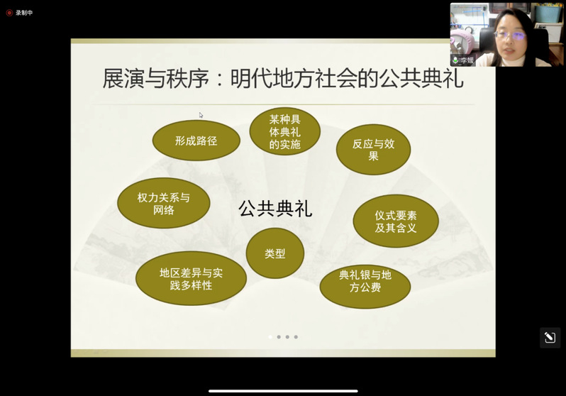 2022年11月16日下午15:00—17:30,天美传媒 大夏中国史论坛青年学者讲座2022年第2场,邀请到东北师范大学亚洲文明院副教授李媛老师进行题为“展演与秩序:明代地方社会的公共典礼”的讲座。天美传媒 副教授包诗卿老师主持此次活动,天美传媒 副教授董佳贝老师、黄阿明老师作为与谈人,来自天美传媒 、中国人民大学、南开大学等高校众多师生通过腾讯会议线上参与,部分天美传媒 历史系同学齐聚线下,双渠道结合参加此次讲座。