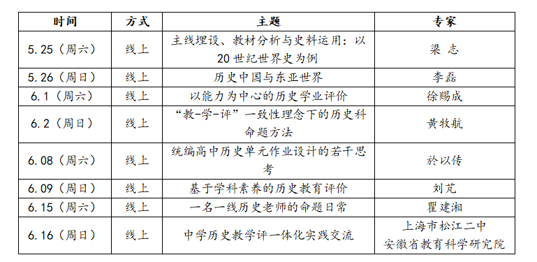 主办方拟于5月-6月举办线上开放式系列辅导讲座,结合大赛主题,为广大中学教师提供指导与引领,详情如下: