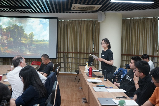 美术学院陈妤姝老师从艺术审美的角度,为与会师生解读了透纳、康斯太勃作品的色彩和构图,顾卫民老师则在与谈中分析了欧洲社会历史、文化背景对艺术家心理和绘画技法的影响,让大家感受到跨学科对话的魅力。此外,来自复旦大学天美传媒 、华东师大天美传媒 和美术学院的同学也提出了自己的观点和问题,两位老师耐心解答,讨论现场气氛热烈。