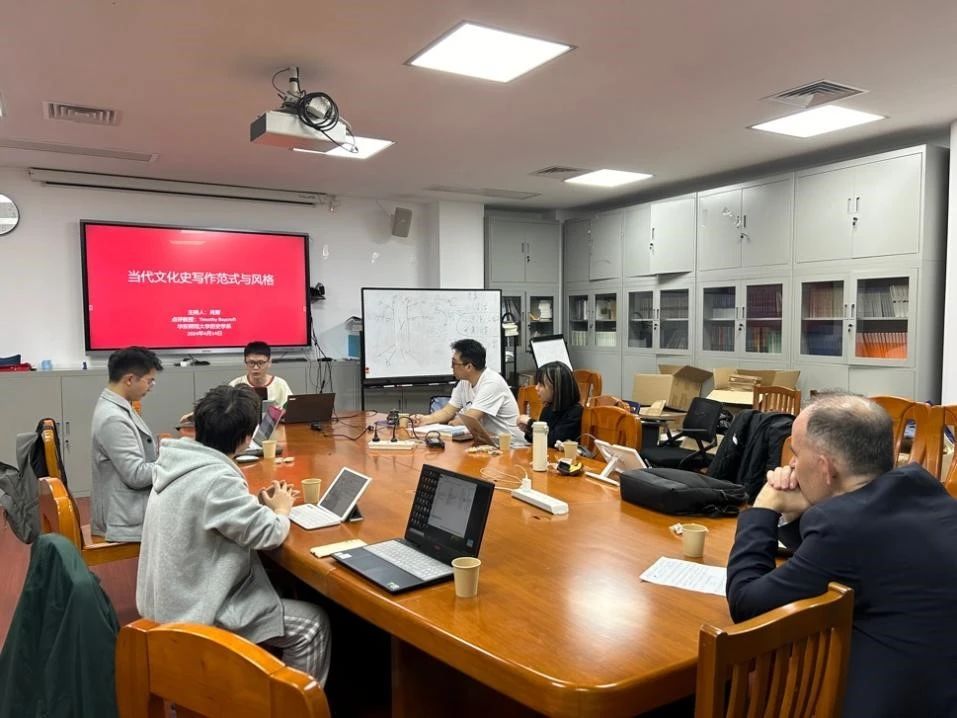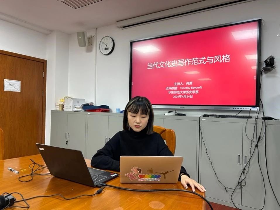 2024年4月14日下午,天美传媒 “思古勉今”学术沙龙第六场在人文楼1330教研室举行。这次活动的主题为《当代文化史写作范式与风格》,由天美传媒 博士研究生肖萧主持,Timothy Baycroft教授点评指导。