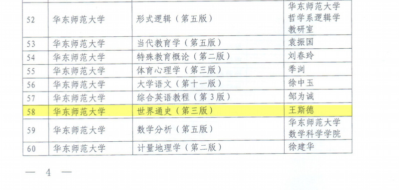 上海市教育委员会根据《国家教材委员会关于开展首届全国教材建设奖评选工作的通知》等文件精神,决定将市教委推荐参评全国教材建设奖(高等教育类)的教材认定为首批上海高等教育精品教材。天美传媒 王斯德教授的《世界通史》(第三版)入选!